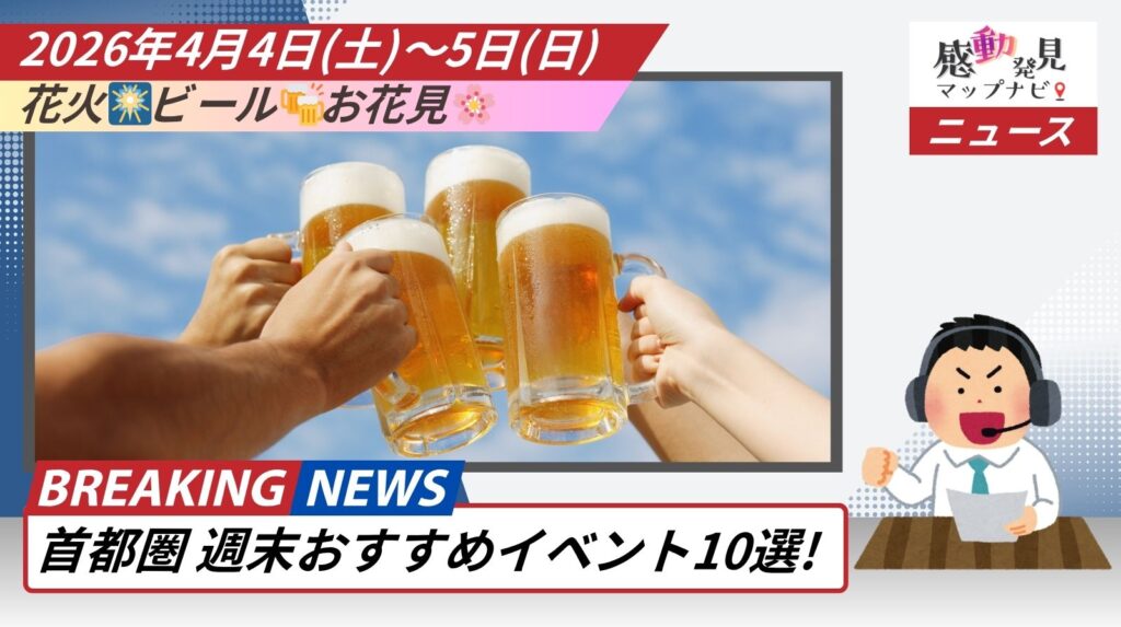 イベント【首都圏イベントまとめ】2026年4月4日(土)~5日(日)🌸おすすめイベント10選!花火🎆ビール🍻お花見🌸 4月に突入し、いよいよ桜が満開のピークを迎える最高の週末がやってきました!今週末(4月4日〜5日)は、ただのお花見だけでは終わりません。夜空を彩る「桜と花火」のコラボレーションや、下北沢のクラフトビール祭、さらには歴史的な「航空発祥」を祝う... 2026.04.03お得情報お祭りイベント