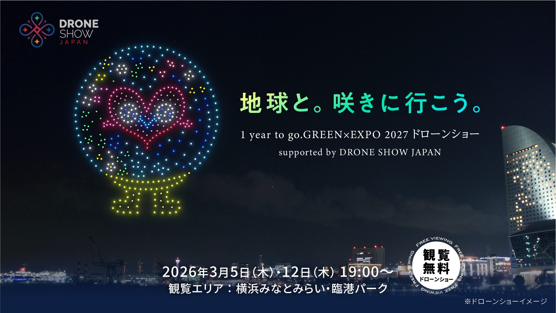 地球と。咲きに行こう。1 year to go. GREEN×EXPO 2027 ドローンショー